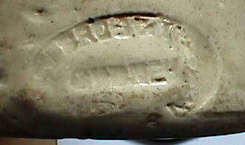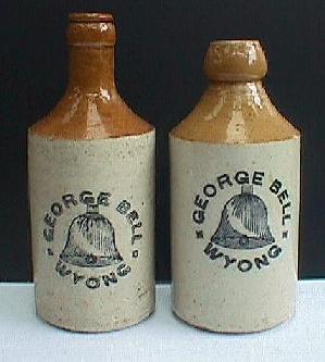 A. Crown Seal. Ginger beer. Ink stamped: "GEORGE BELL WYONG". Found on back of some bottles: "THIS BOTTLE IS THE PROPERTY OF G. BELL, WYONG" (see below, top frame) Potter's mark: " Mauri Bros. Thomson, Sydney". (see below, middle frame) B. Blob Top. Ginger beer. Ink stamped:: "GEORGE BELL WYONG". Potter's mark: "R. Fowler 1912 - " or, "R. Fowler" (see below, lower frame) |