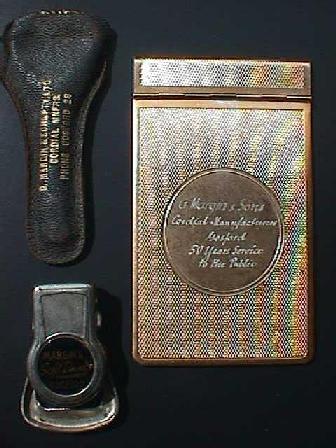 A. Black, leather holder for bottle opener. B. Margin bottle opener. C. Metal pad-holder presented to the Point Clare General store by Margin and Sons in 1956. Point Clare store proprietor: John Montgomery's parents. Pad-holder reads: "MARGIN & SONS CORDIAL MANUFACTURERS GOSFORD 50 YEARS SERVICE TO THE PUBLIC". |