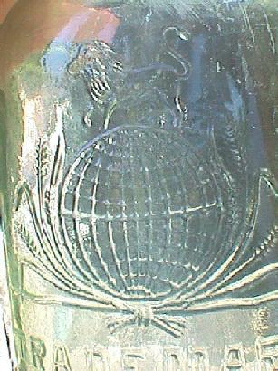 Close-up of trade mark as found on Imperial Quart flask. (world globe displaying stylised continents) |