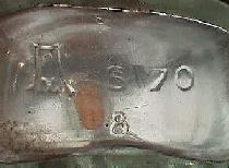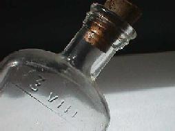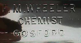 Left: "F. M. WHEELER CHEMIST GOSFORD" Machine-made bottle. Clear glass. "3.V.111." embossed on shoulder. (See close-ups below).