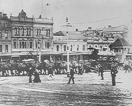 Above: George Street, 1900. Grand Hotel on left and Fitz's Crystal Palace Hotel on far right.