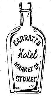 Circa 1905 publicity photo for a Sydney theatre production. Note the use of a prop which is an advertising sign for "Garratts Special Whisky" above the bar. |