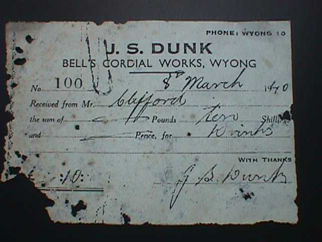 Below: G. Bell and Dunk business invoices and business card (see close-ups as below).