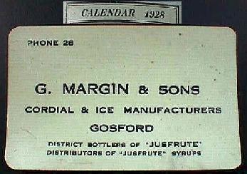 A. Black, leather holder for bottle opener. B. Margin bottle opener. C. Metal pad-holder presented to the Point Clare General store by Margin and Sons in 1956. Point Clare store proprietor: John Montgomery's parents. Pad-holder reads: "MARGIN & SONS CORDIAL MANUFACTURERS GOSFORD 50 YEARS SERVICE TO THE PUBLIC". |