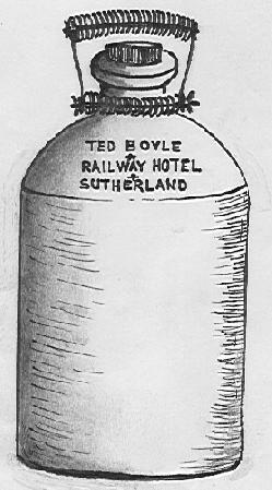 One only known Demi-john. Ink stamped: "TED BOYLE RAILWAY HOTEL SUTHERLAND".