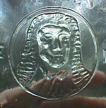 Imperial Pint flask. Clear glass, applied top. Rare. A judge's head motif appears on front of bottle. Embossed on front: "PINT H.S. WESSEL COURT HOUSE HOTEL OXFORD STREET". |