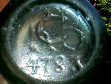 Close-up of the base of B., as above. Here is the somewhat faint embossing of the logo of Kilner Brother's Company: "K.C.B.". These letters are intertwined in the style of the day, in the top half of this picture (i.e. R B with C overlapping). Also showing: "4783" |