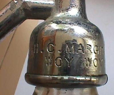 A. B. 26 ounce. Clear glass. Curved "A.G.M" and "S.T.265" embossed on base . (See top, left rubbing for marking/logo.) (7 and 10 ounce - unknown?) |